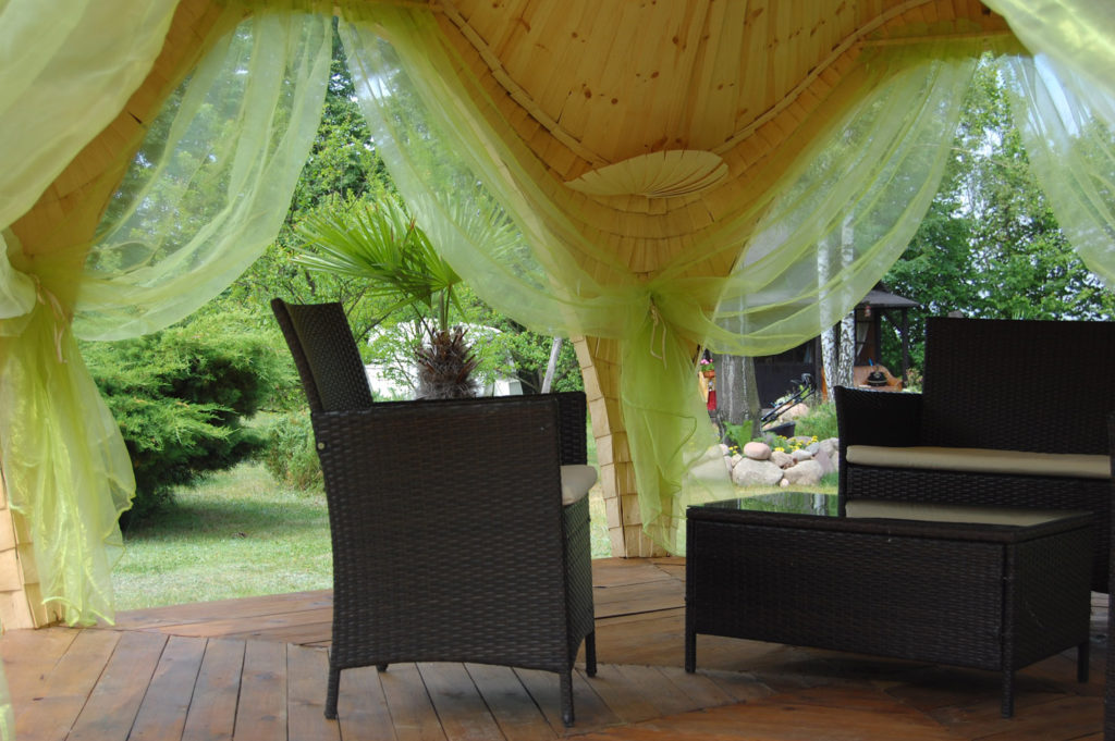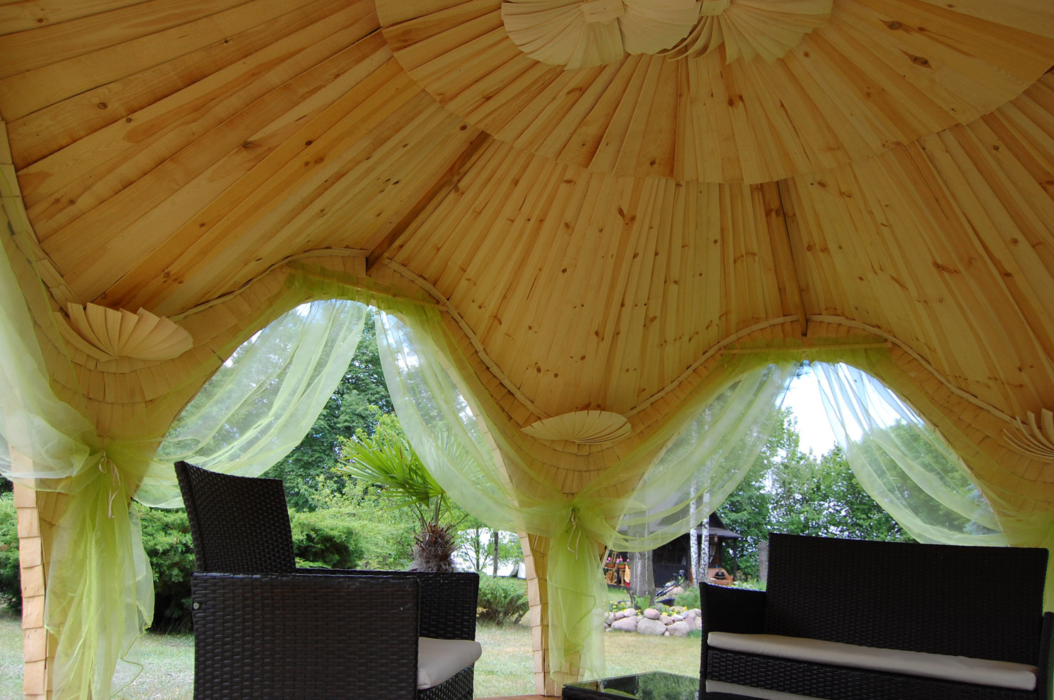 Osika Odstrasza owady (Komary i insekty). Wewnątrz Altana Wykończona jest w bardzo wysokim standardzie stolarskim (Modrzew i sosna). Ze względu na oryginalną wyjątkową formę jest Architektoniczną ozdobą ogrodu.